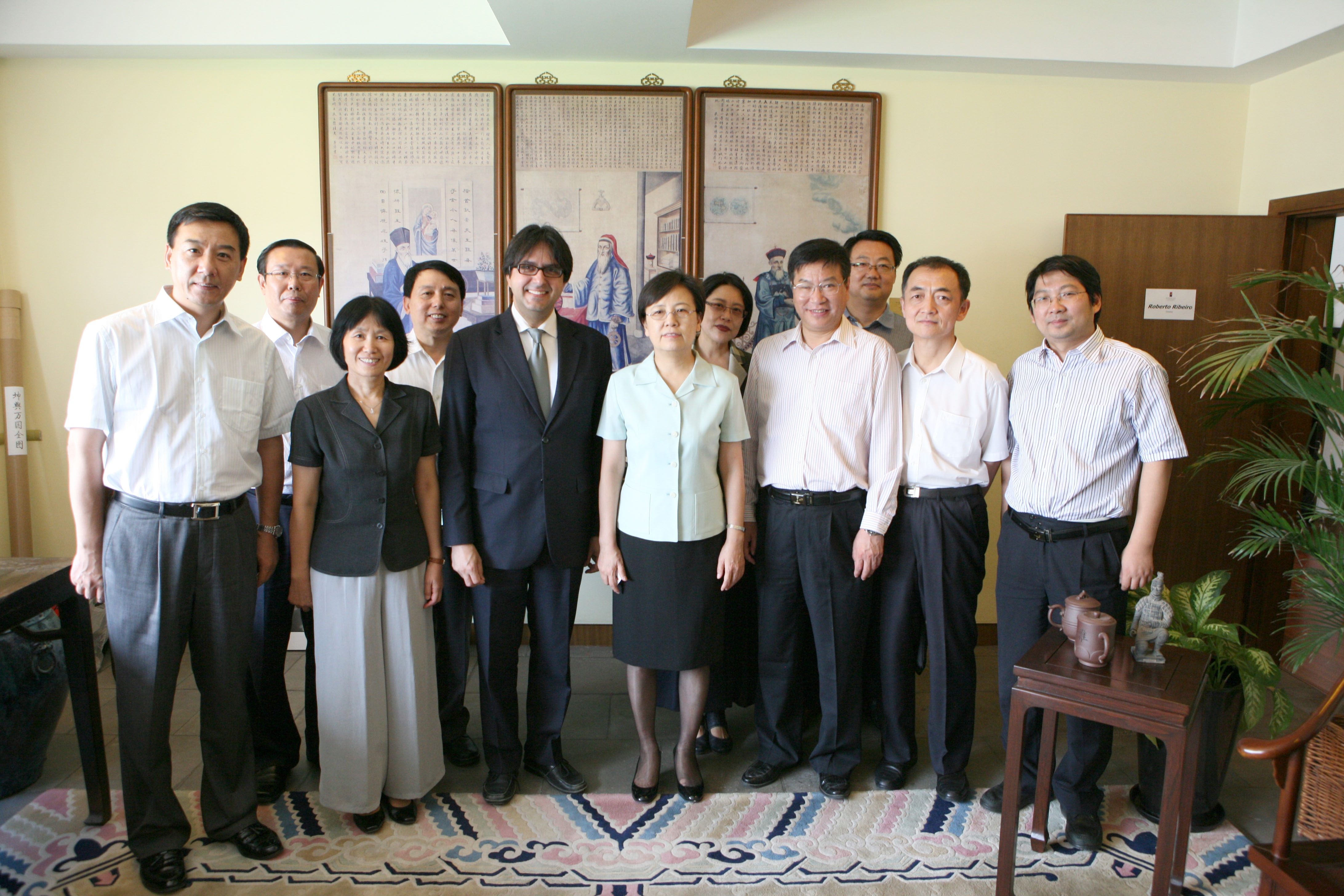 签约仪式前,鲁昕副部长一行还参观了我校校园。在我校领导及相关部门负责人的陪同下,鲁昕副部长一行先后参观了新图书馆和北京中国学中心,听取了我校国际化办学和绿色校园建设情况汇报。